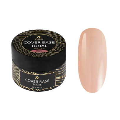 Baza kauczukowa Cover Base Tonal 009 FOX 30 ml – półtransparentny róż, wzmacnia, wyrównuje i chroni paznokcie. Idealna pod hybrydę i do naturalnego manicure.