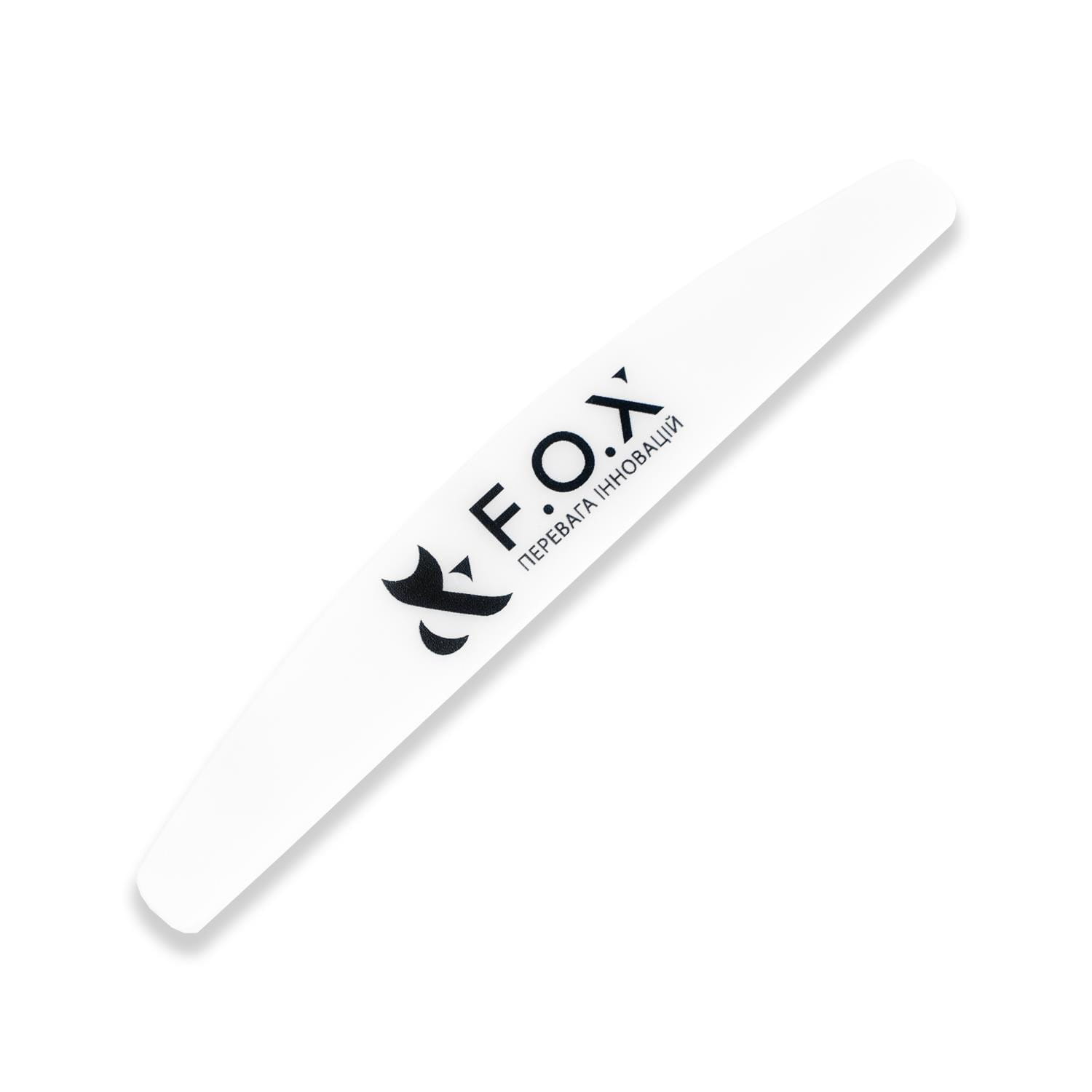 Czarny pilnik półksiężycowy FOX 135 mm, gradacja 100/180, wymienne nakładki, lekki i trwały, idealny do precyzyjnego manicure i dezynfekcji.