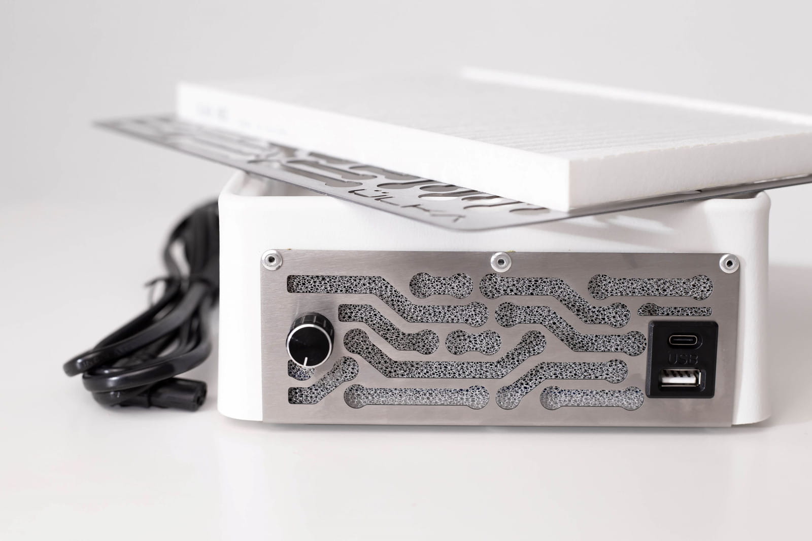 Pochłaniacz pyłu do manicure biały – kompaktowa konstrukcja i niska waga