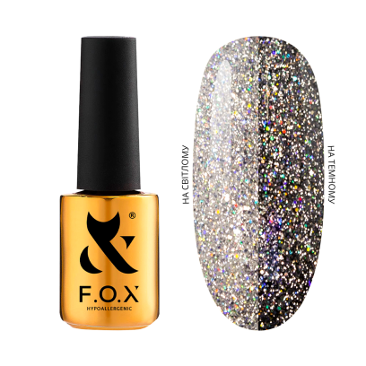 Top hybrydowy bez warstwy lepkiej, srebrny z holograficznymi drobinkami. Długotrwały blask, łatwa aplikacja, 7 ml – idealny do każdej stylizacji.