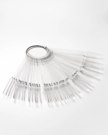 - Przezroczysty wzornik F.O.X w kształcie szpica, 50 szt., idealny do prezentacji lakierów i zdobień. Trwały, estetyczny, z praktycznym metalowym kółkiem.
