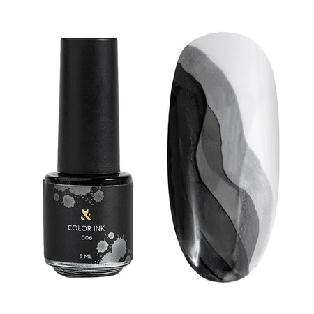 - F.O.X Color Ink Blue 006 – intensywny czarny tusz do paznokci, szybkoschnący, idealny do efektów akwarelowych i kreatywnych zdobień.